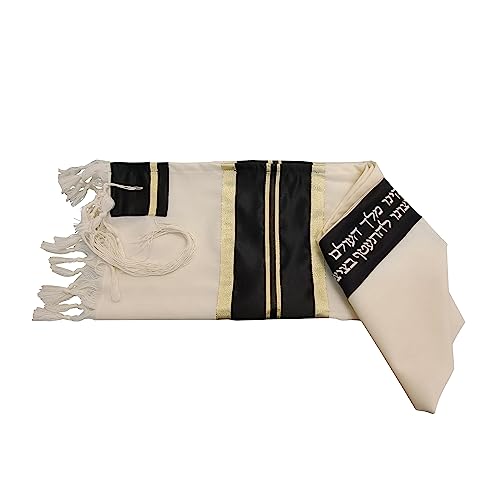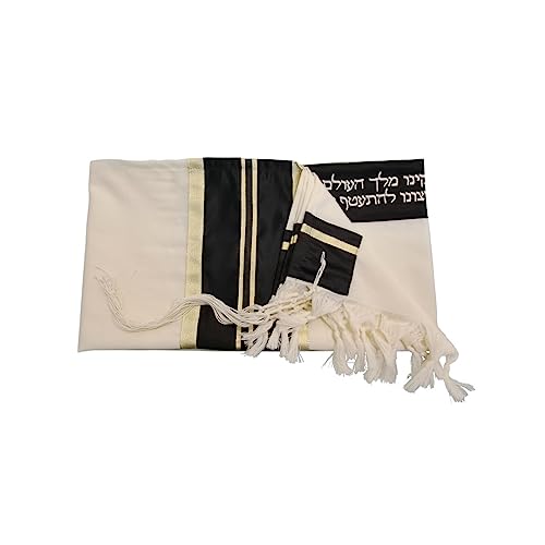 HOT ! Personalized Wool Tallit, Black and Gold Stripes Men's Tallit Prayer Shawl Tzitzit from Israel 20 inch by 72 inch