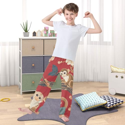HOT ! ZZXXB Monkey Peony Flower Boys Long Pants Soft Trousers Elastic Waist Kids Lounge Bottoms with Pockets S-XL