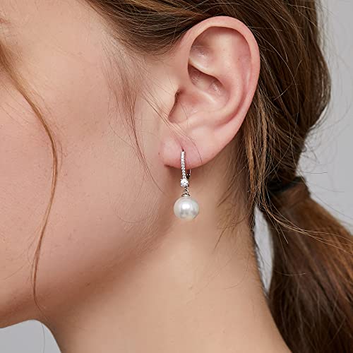 • ❤.【Top Quality】925 Sterling Silver Pearl Earrings Dangle Earrings. Created White Pearl Earrings. Culture Pearl Drop Earrings with Princess Cut 4A+ Cubic Zirconia. 925 Silver Earrings with Pearls. Hypoallergenic and Nickel Free Dangle Earrings.