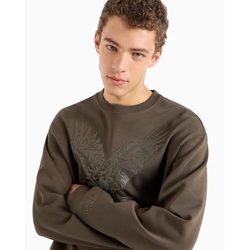 Armani Exchange Men's Embroidered Eagle Cotton Poly Interlock Fleece Sweatshirt 1
