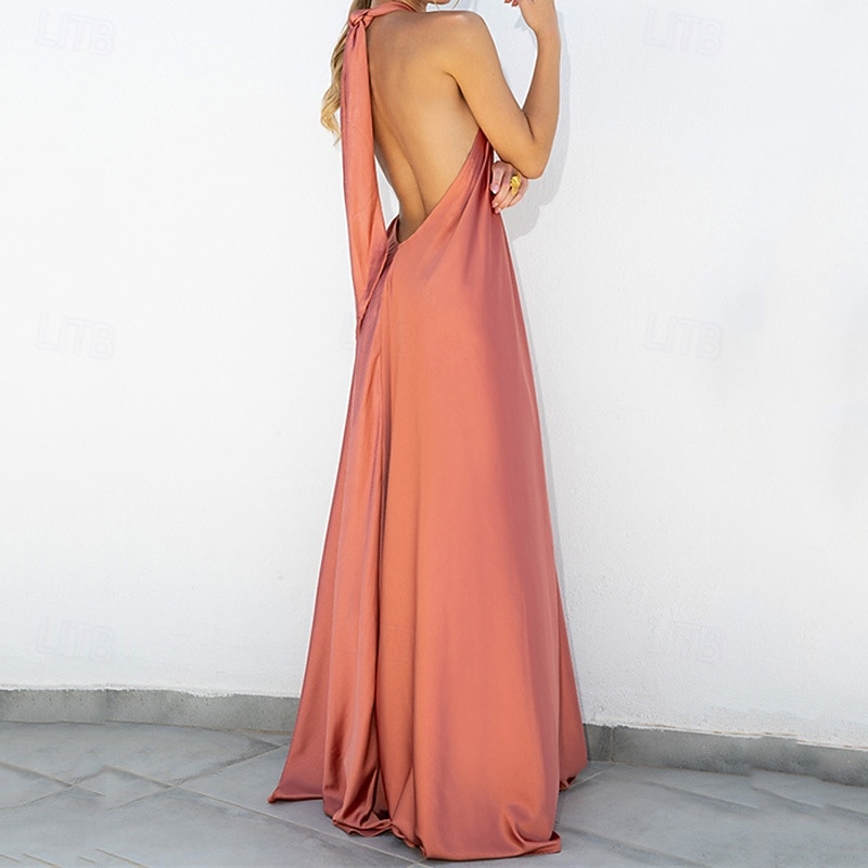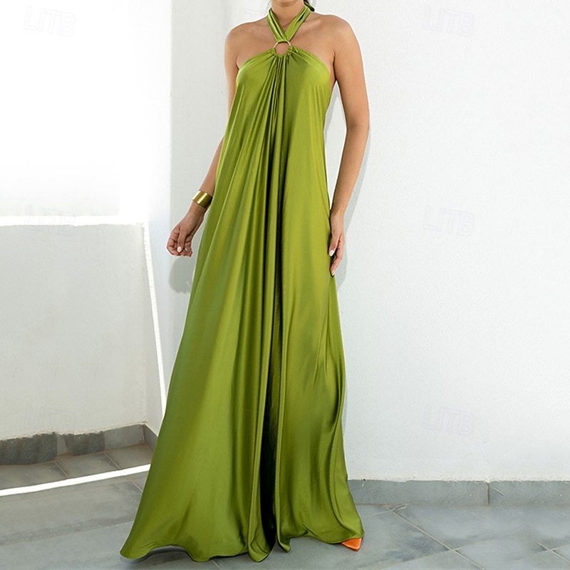More information about Women's Long Dress Maxi Dress Casual Dress Satin Dress Summer Dress Halter Neck Dress Fashion Outdoor Holiday Date Regular Fit Plain Sleeveless Halter Neck Light Green Blue Orange Summer Spring