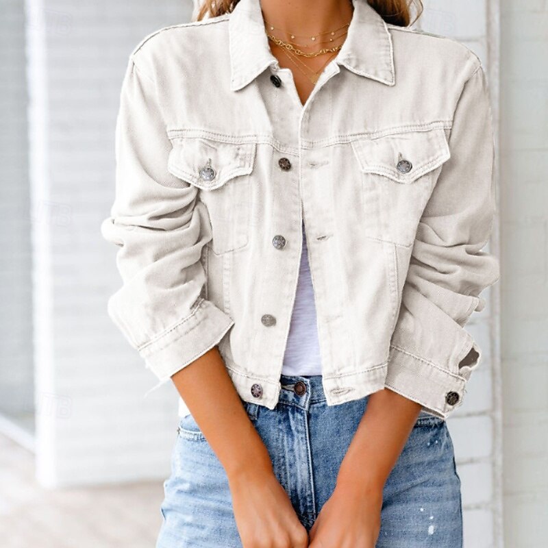 Highlights - Perfect for spring days - Made with soft and breathable cotton fabric - Classic long sleeve design - Tailored for women with a stylish touch - Versatile for daily wear - Features trendy button and pocket details - Complete with a chic shirt collar neckline