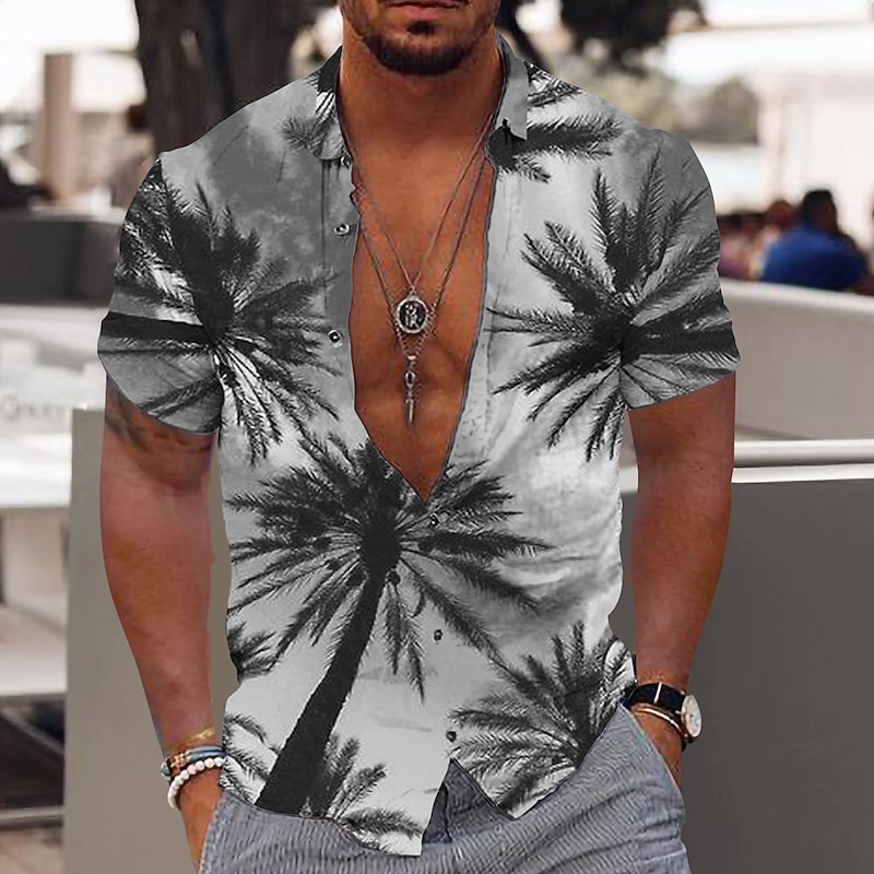 More information about Men's Coconut Tree Tropical Plants Shirt Summer Hawaiian Shirt Aloha Shirt Short Sleeve Shirt Turndown Fashion Designer Casual Outdoor Street Casual Black Yellow Pink Print S M L