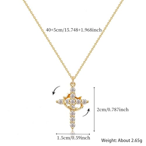 HOT ! 925 Sterling Silver Cross with Crown Necklace for Women Cubic Zirconia Pendant Necklaces Adjustable Choker Necklace Easter Christian Baptism Religious Christian Faith Jewelry Christmas Gifts