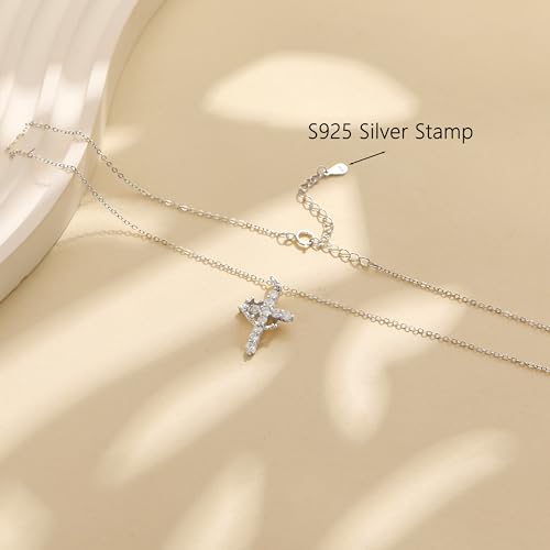 925 Sterling Silver Cross with Crown Necklace for Women Cubic Zirconia Pendant Necklaces Adjustable Choker Necklace Easter Christian Baptism Religious Christian Faith Jewelry Christmas Gifts 6