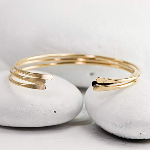 LOTUS STONE JEWELRY Smooth 14K Gold Fill Cuff Bracelet with Hammered Ends, Skinny Gold Bangle with Hammered Ends (Large, Gold) 5