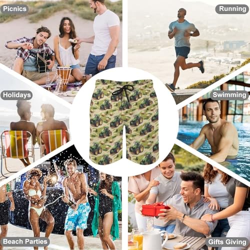 • Mesh Lining & Adjustable Fit: Designed with a drawstring waistband and mesh liner, these Pastoral Green Tractor Print board shorts for men swim keep you cool and supported all day. Great for poolside lounging or intense beach activity, they double as both swimming trunks men and casual swimwear