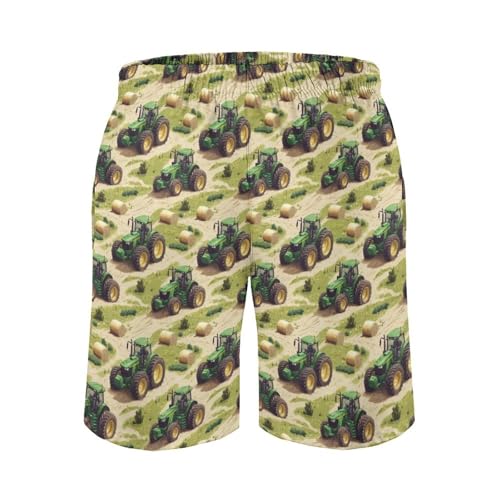 HOT ! Hawaiian Shorts for Men - Pastoral Green Tractor Print Quick Dry Mens Swim Trunks Bathing Suits with Mesh Lining