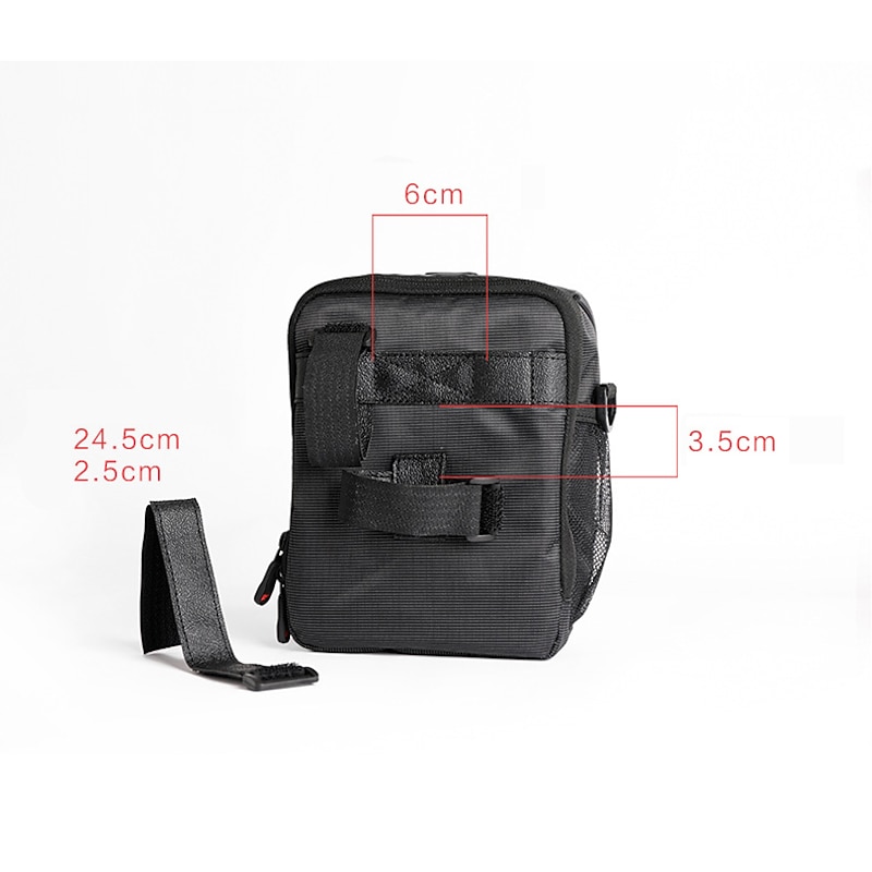 Highlights 1. Multifunctional Bag: Use it as a bike handlebar bag or shoulder bag with buckles on both sides offering easy attachment and detachment. 2. Versatile: Comes with a belt and fixing strap to be worn as a regular bag when detached from your bike. 3. Durable: Made of strong "Twill Fabric," three materials woven together using high-temperature heat. The Nylon mesh in the middle makes it wear-resistant even in harsh outdoor conditions. 4. Stable and Anti-Slide: Above strap fixes to the handlebar, while the below strap attaches to the brake line to ensure safety. Comes with an anti-slide strap to protect the frame of your bike. 5. Optimal Storage: With a 5.9" x 3.3" x 7.5" main compartment, it's perfect for storing small items like a cell phone or wallet.