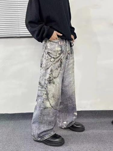 • Harajuku-Inspired - Drawing inspiration from Harajuku streetwear, these jeans are sure to turn heads with their bold 3D chain printed design and grunge aesthetic.