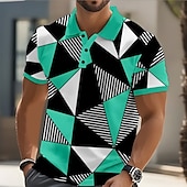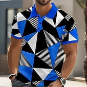 More information about Men's Geometric Color Block Polo Short Sleeve Polo Shirts Collared Shirts Casual Street Athleisure Daily Wear 3D Print Buttons Summer Red Blue Orange
