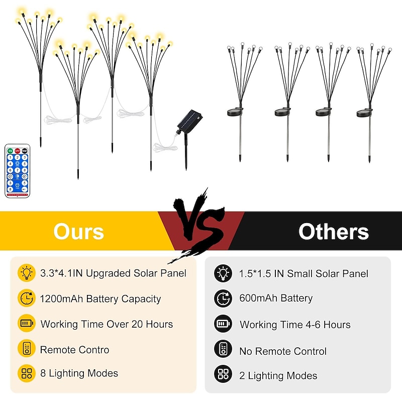 $53.99 - Solar Powered Firefly Lights, 4 Pack 8LED Solar Garden Lights, Firefly Lights Outdoor Waterproof with Remote Control 8 Lighting Modes, Solar Outdoor Lights Decorative for Pathway Yard Patio Landscape 2025. Shop for cheap Pathway Lights & Lanterns online? Buy at lightinthebox.com on sale today!