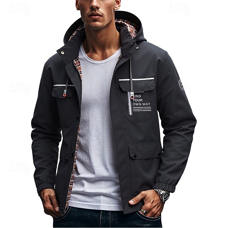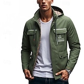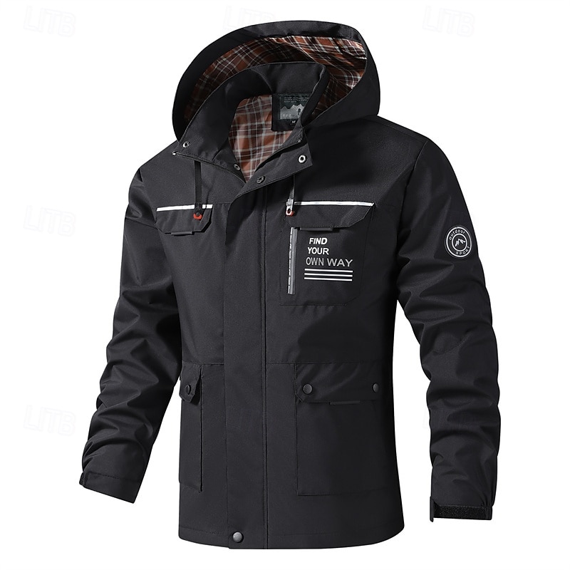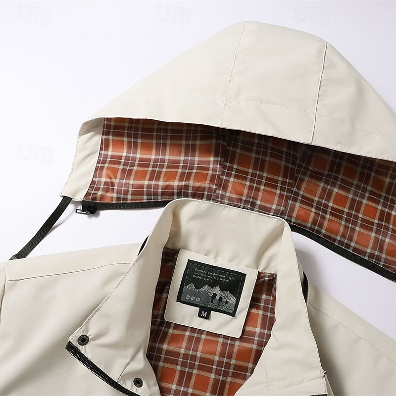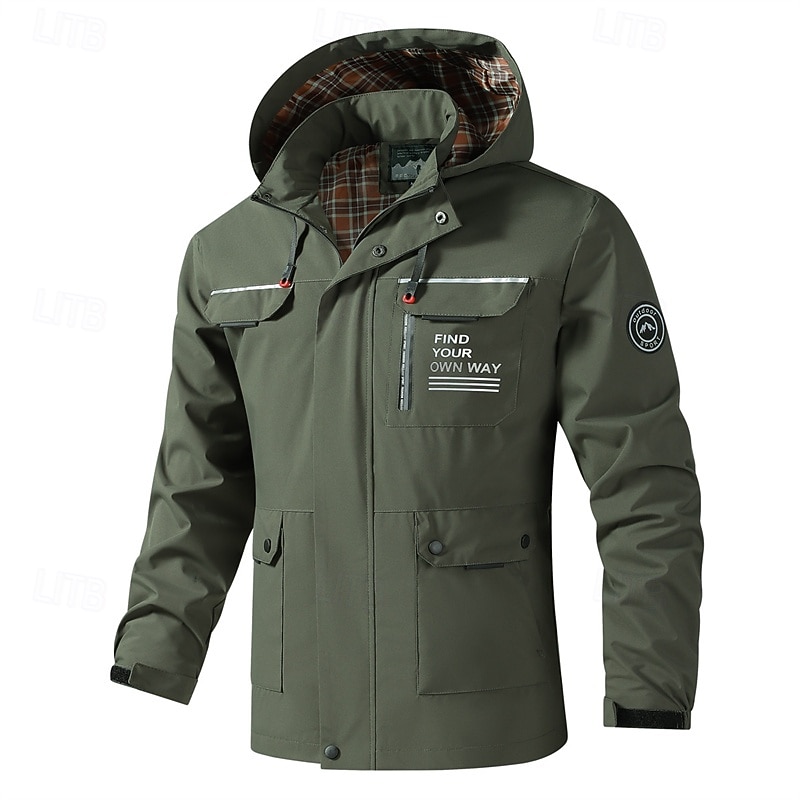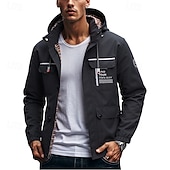 More information about Men's Outdoor Jacket Raincoat Hiking Jacket Daily Hiking Windproof Rainproof Pocket Spring Fall Letter Fashion Classic Hooded Regular Black Yellow Army Green Beige Jacket