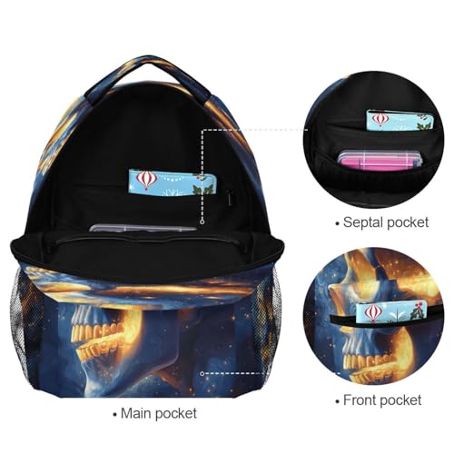 Sugar Skull Star Day Of The Dead Blue Backpack for School Boys Girls Adults Kids Bookbag Laptop Bag 15L 4