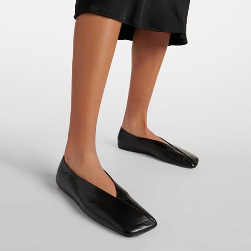 Leather Ballet Flats for Women Square Toe Slip On Flat Shoes Comfortable Dress Weeding Work Ballerina Loafers for Casual Daily 6