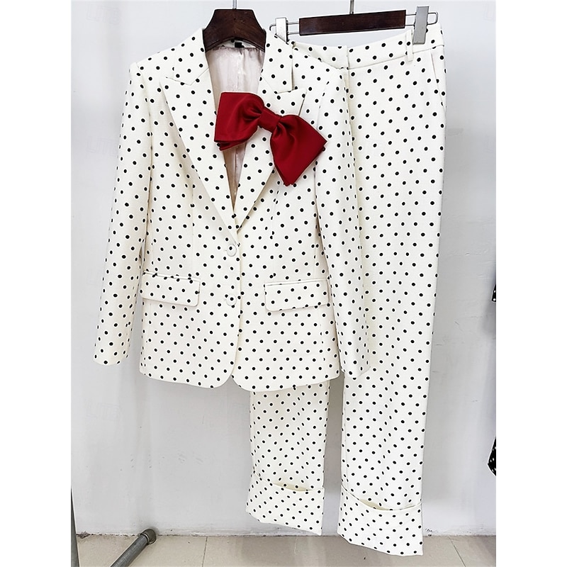 Women's 2 Pieces Suits Formal Wedding Guest Formal Evening Cotton Blend Elegant Vintage Long Sleeve Ankle Length Peak Lapel Single Breasted 6