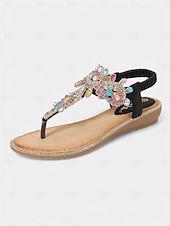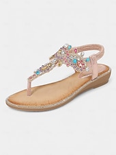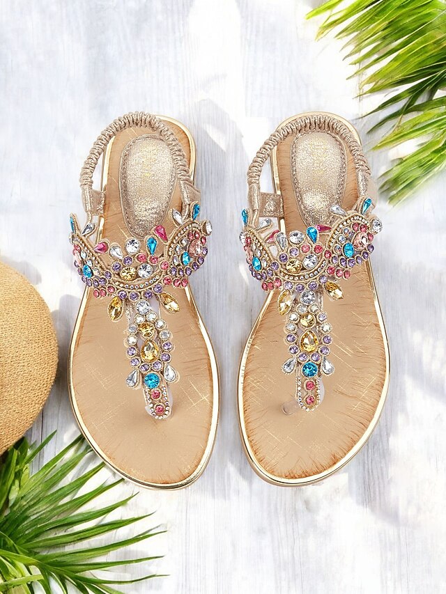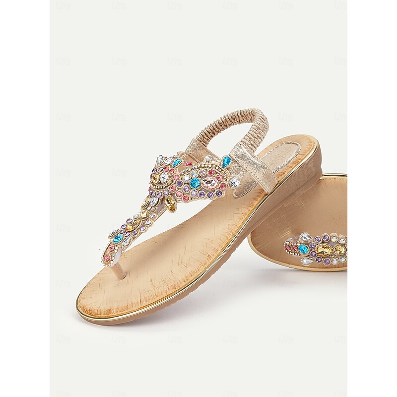 Women's Gold Rhinestone Flat Sandals – Elegant Bohemian T-Strap Sandals for Summer, Beach Vacations, and Casual Outings 17