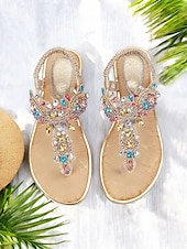 More information about Women's Gold Rhinestone Flat Sandals – Elegant Bohemian T-Strap Sandals for Summer, Beach Vacations, and Casual Outings