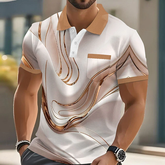 HOT ! Men's Graphic Marble Polo Short Sleeve Polo Shirts Collared Shirts Business Casual Outdoor Athleisure Daily Wear 3D Print Buttons Summer Blue Purple Brown