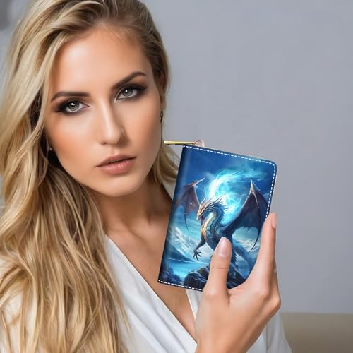 HOT ! Credit Card Holder Wallets for Women, RFID Blocking Small Leather Card Case Wallet with Zipper Accordion Wallets - Dragon