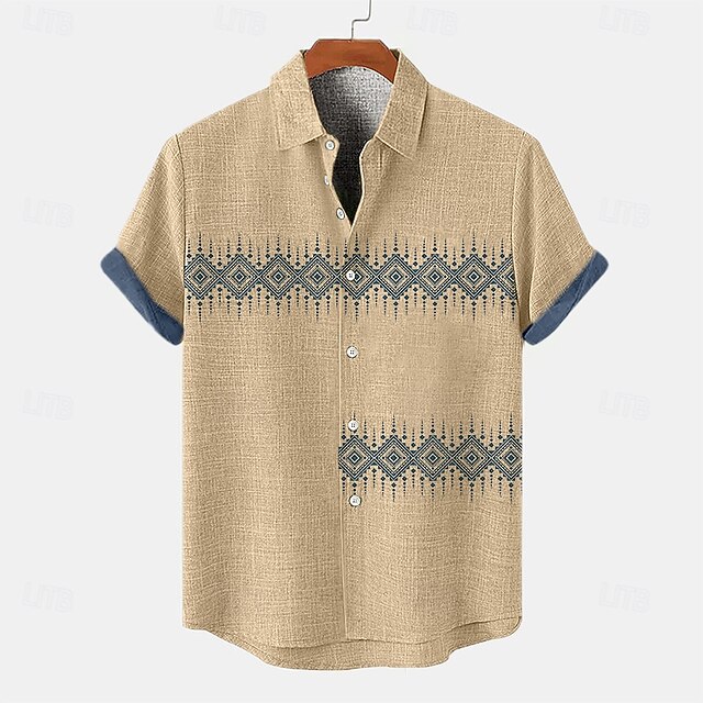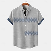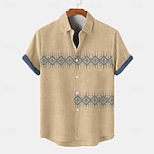 HOT ! Men's Shirt Linen Shirt Retro Shirts Vintage Shirt Ethnic Shirt Ethnic Vacation Daily Khaki Gray Light Blue Short Sleeve Turndown Summer Spring Clothing Apparel