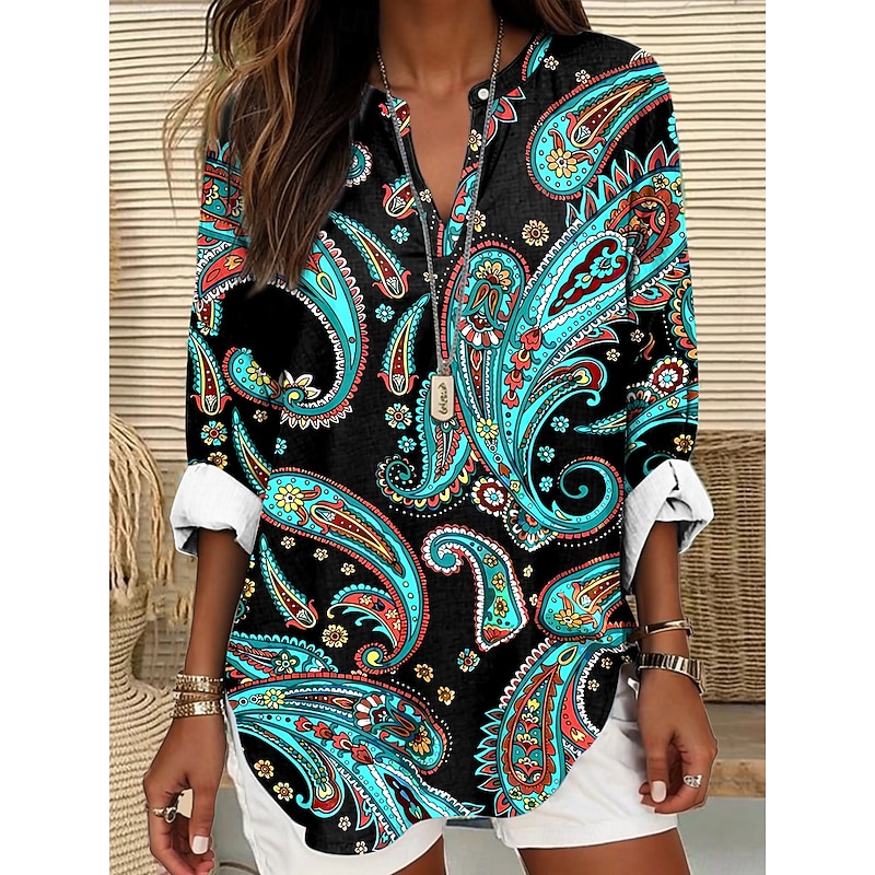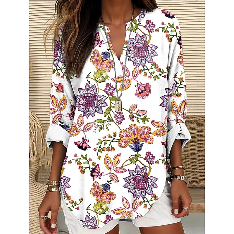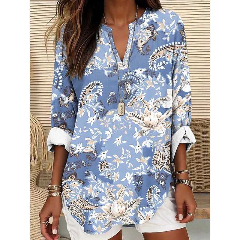 More information about Women's Blouse Tunic V Neck Long Sleeve Boho Casual Summer Tops Floral Graphic Daily Regular Tops Daily Print Black White Pink Blue Sky Blue