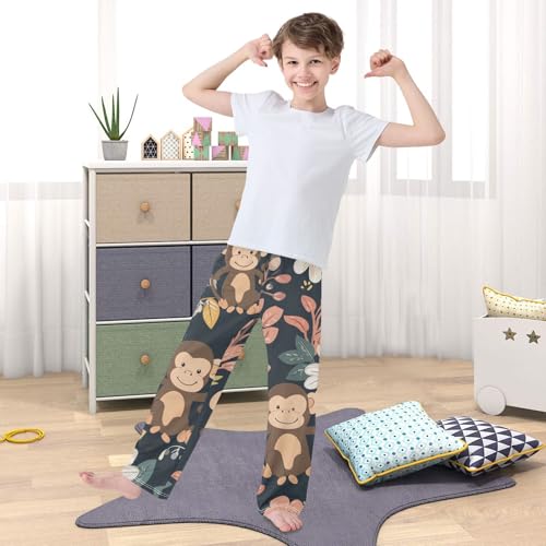 Monkey with Florals Boys Long Pants Soft Trousers Elastic Waist Kids Lounge Bottoms with Pockets S-XL 4