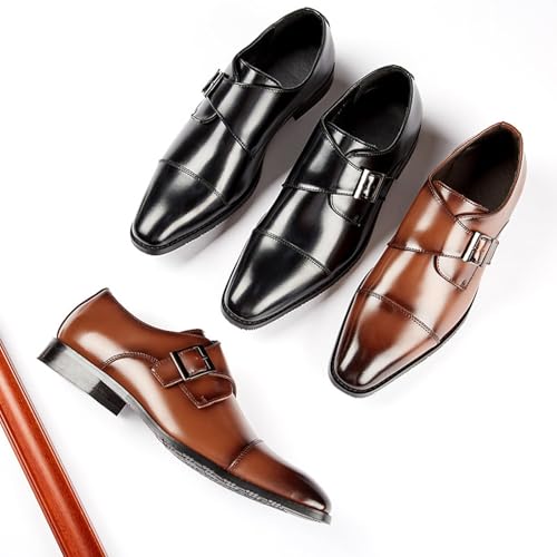 Men's Leather Buckle Monk Strap Loafers Fashion Classic Cap Toe Low Top Comfortable Slip-On Dress Oxfords Business Casual Party Office Formal Shoes 7