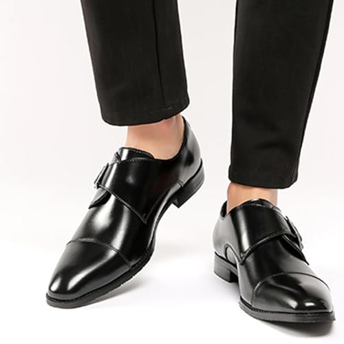 Men's Leather Buckle Monk Strap Loafers Fashion Classic Cap Toe Low Top Comfortable Slip-On Dress Oxfords Business Casual Party Office Formal Shoes 6