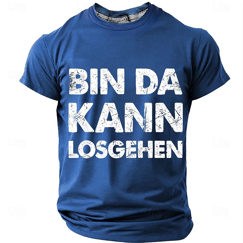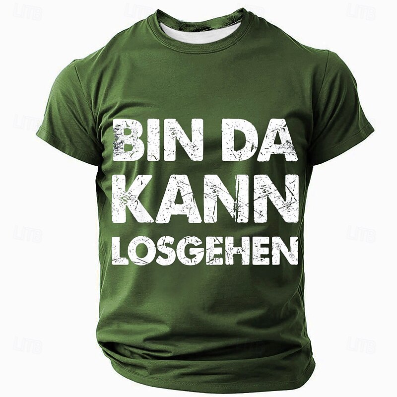 HOT ! Men's Graphic T-Shirt 'Bin Da Kann Losgehen' German Phrase Ready to Go Lifestyle Short Sleeve Top