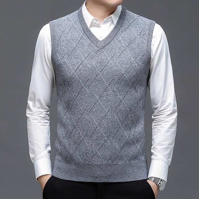 More information about Men's Sweater Sweater Vest Pullover Sweater Jumper Ribbed Knit Regular Tops Knitted Slim Fit Geometric V Neck Knitwear Contemporary Casual Daily Wear Clothing Apparel Winter Spring & Fall Camel Dark