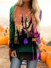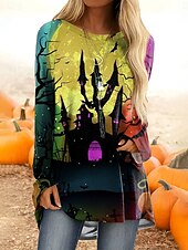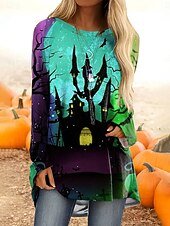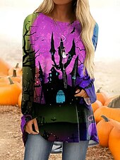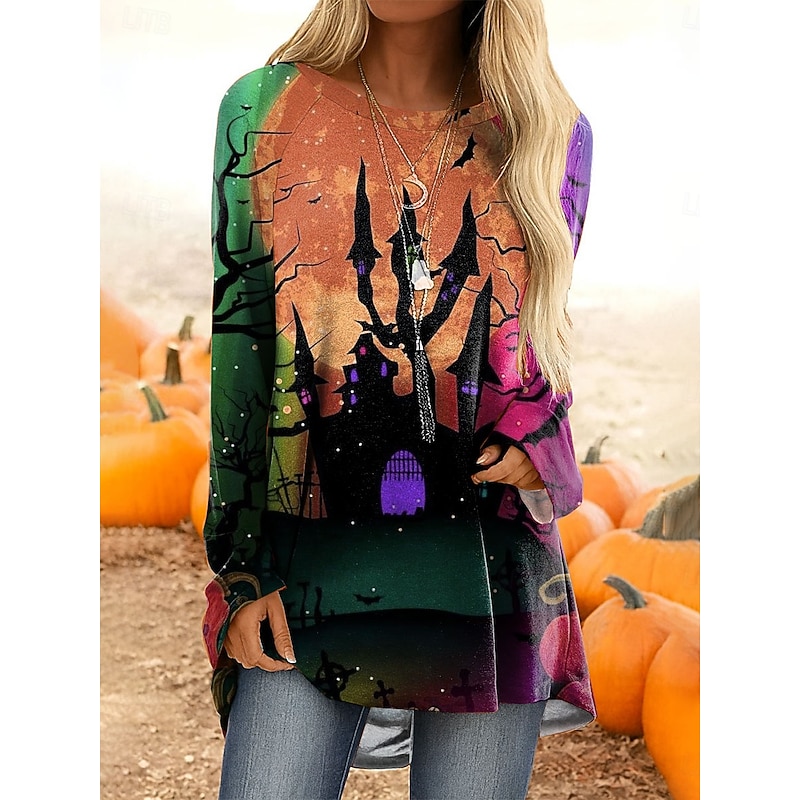 This Halloween Women's T Shirt Castle Ombre Graphic Vintage fashionable Classic Long Sleeve Crew Neck Regular Tops Daily Print Yellow Pink Blue Orange Spring Fall combines elegant design with practical functionality. Every detail has been carefully considered to ensure you get the best possible experience. The top-grade construction means this product will serve you well for years to come.