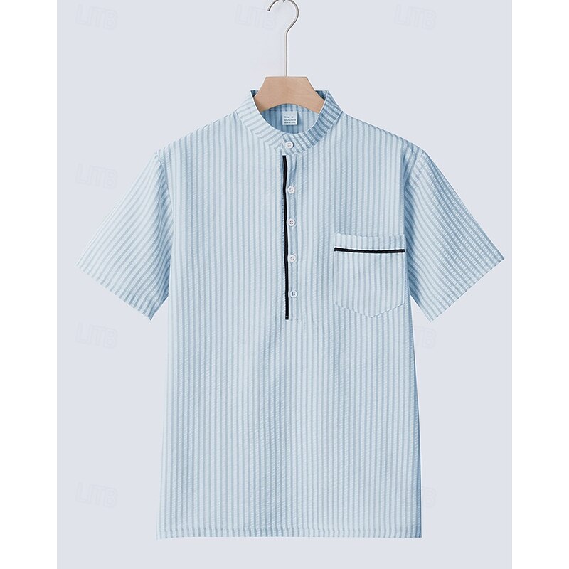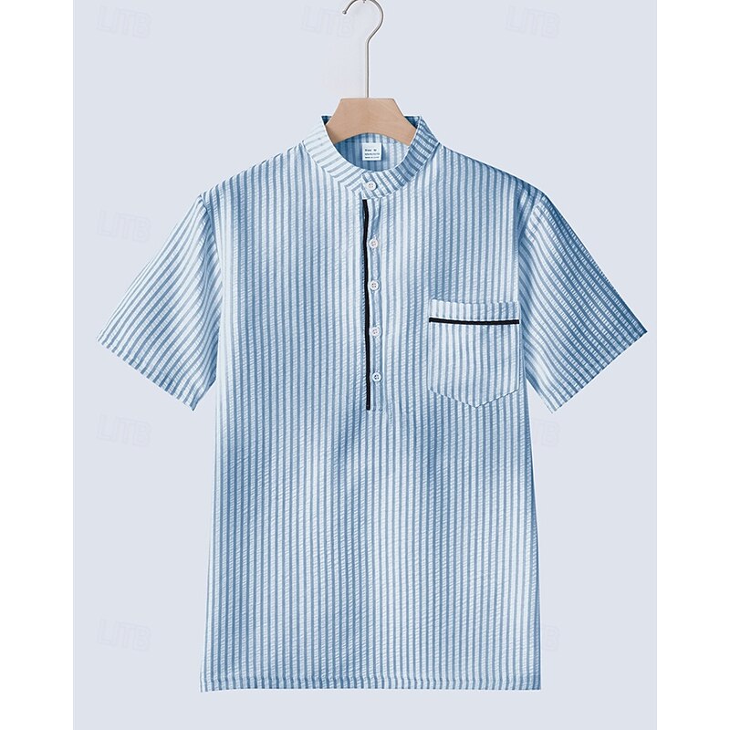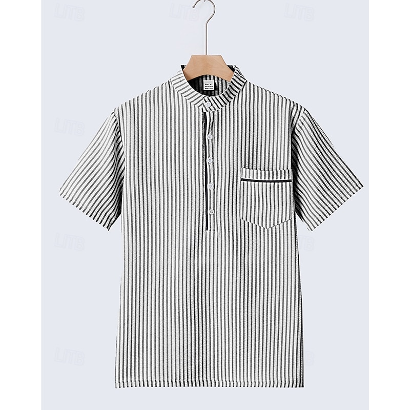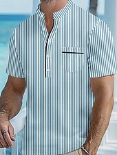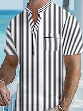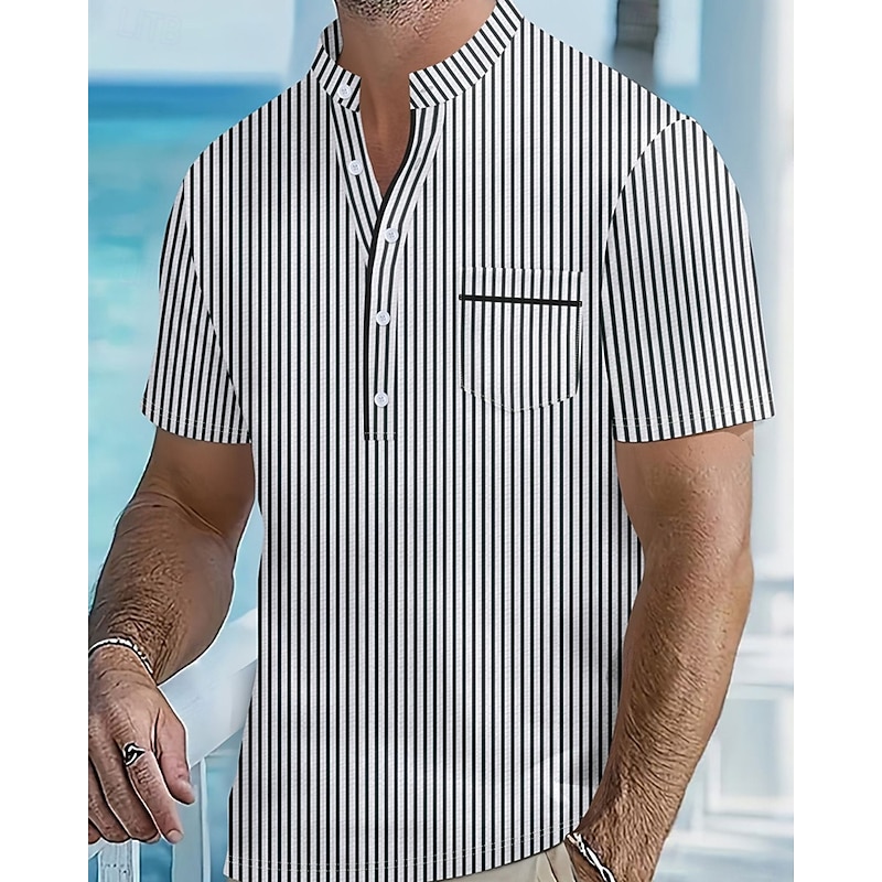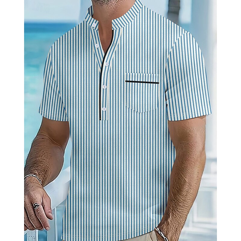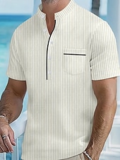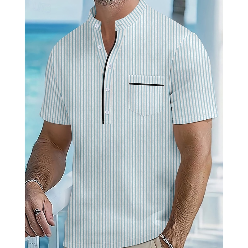 More information about Men's Polo Shirts Golf Shirt Outdoor Daily Wear Banded Collar Short Sleeve Fashion Hawaiian Stripe Pocket Summer Regular Fit Black Blue Sky Blue Green Apricot Polo Shirts