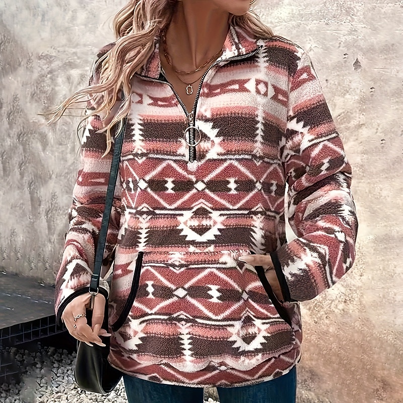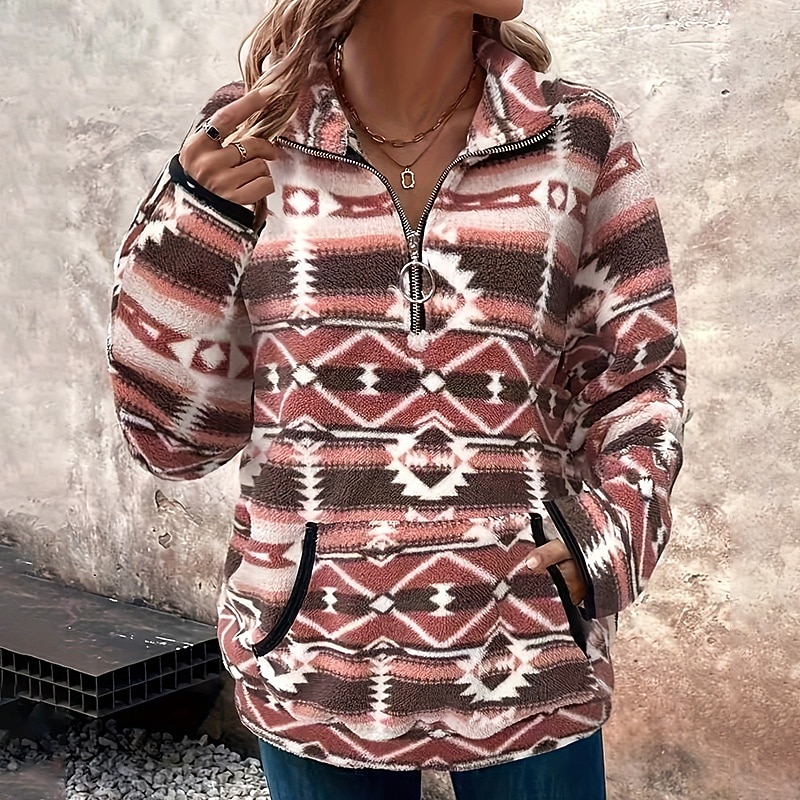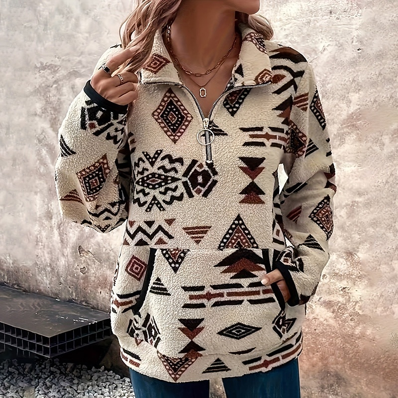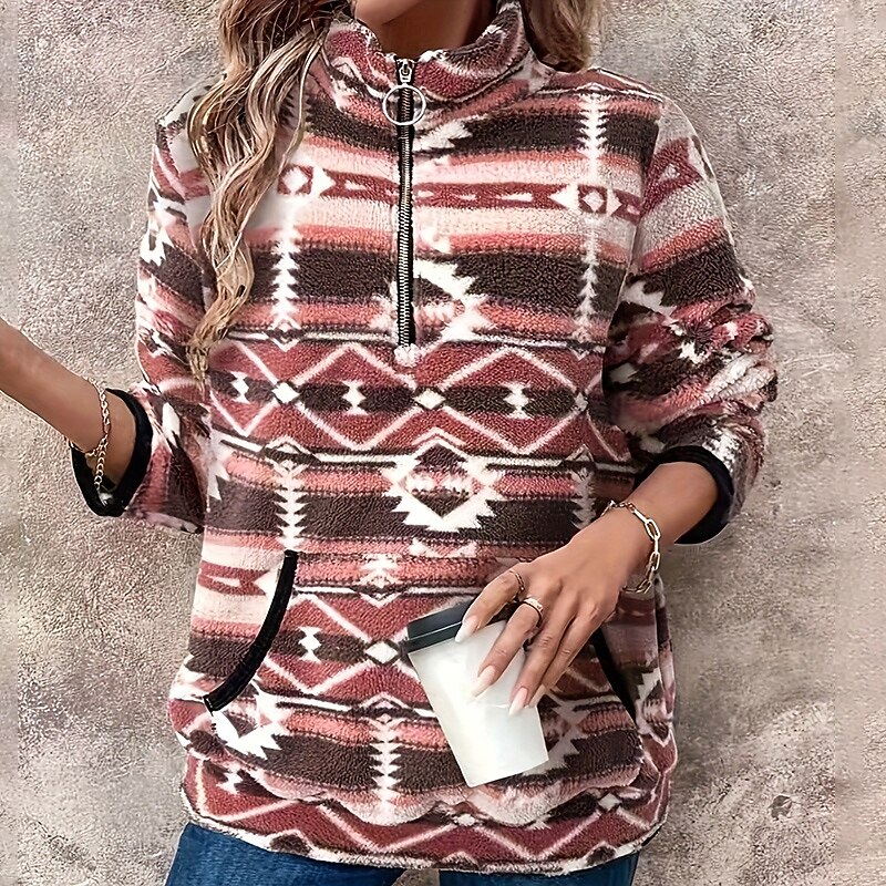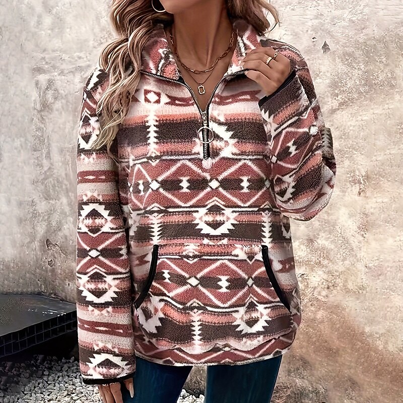 Women's Zip Up Sweatshirt Thick Warm with Pockets Long Sleeve Sports Geometry Top For Outdoor Travel Vacation Activewear 1