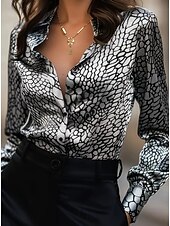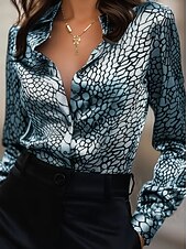 More information about Women's Work Shirt Ombre Graphic Elegant Stylish Casual Long Sleeve Shirt Collar Regular Tops Work Party Evening Wear Daily Silver Blue Spring, Fall, Winter, Summer