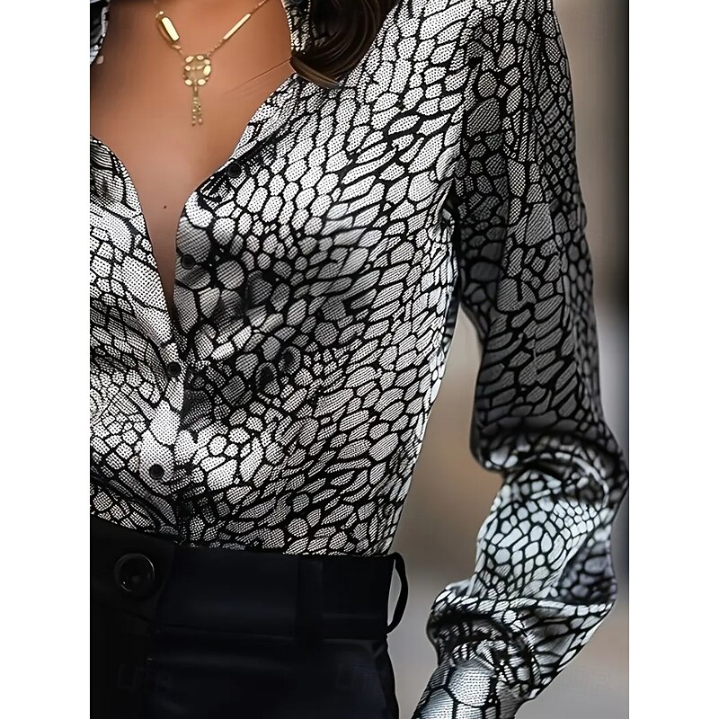 Women's Work Shirt Ombre Graphic Elegant Stylish Casual Long Sleeve Shirt Collar Regular Tops Work Party Evening Wear Daily Silver Blue Spring, Fall, Winter, Summer 2