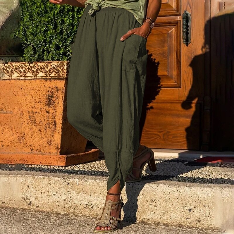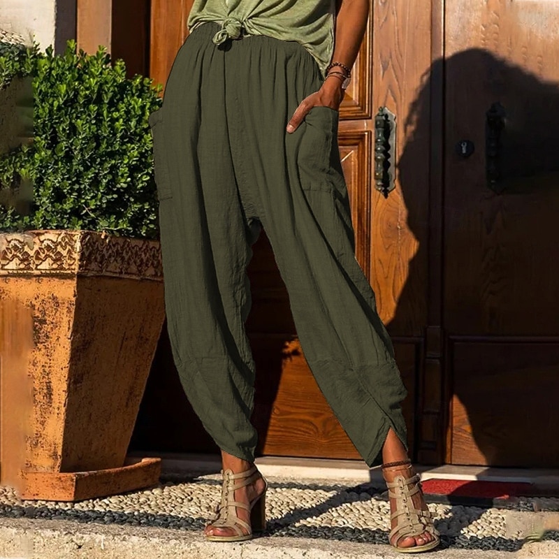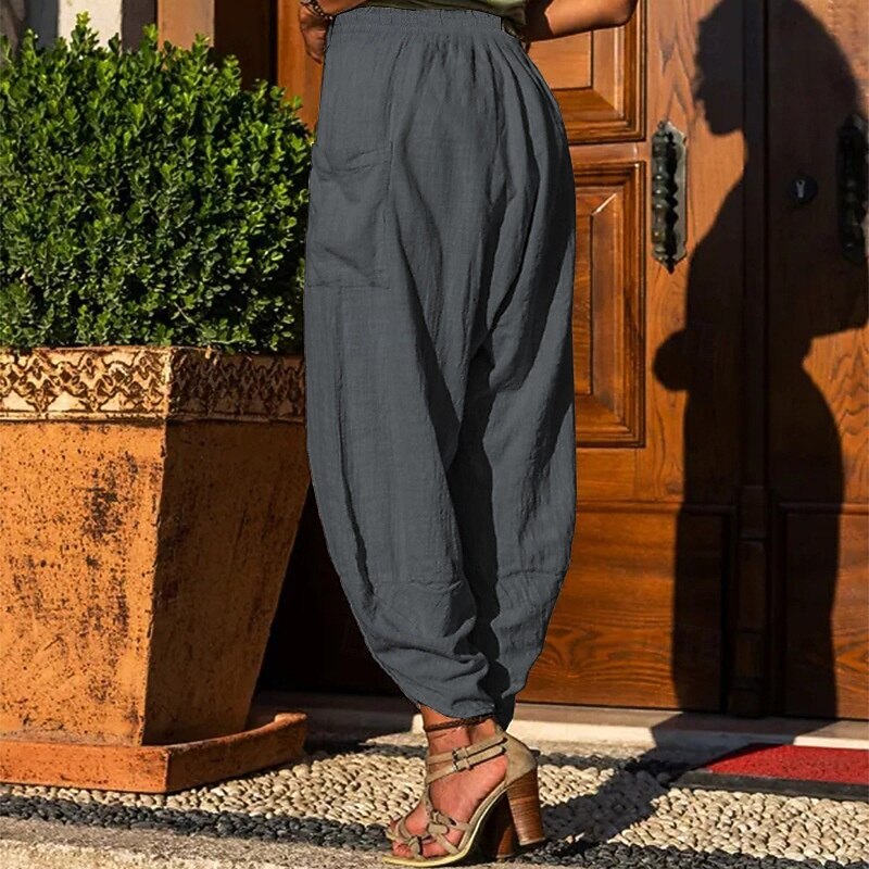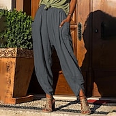 HOT ! Women's Cotton Linen Pants Slacks Active Casual Full Length Natural Plain Pocket Elastic Waist Outdoor Comfortable Outdoor Daily Apricot Army Green Dark Gray Summer Regular Fit