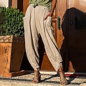 More information about Women's Cotton Linen Pants Slacks Active Casual Full Length Natural Plain Pocket Elastic Waist Outdoor Comfortable Outdoor Daily Apricot Army Green Dark Gray Summer Regular Fit
