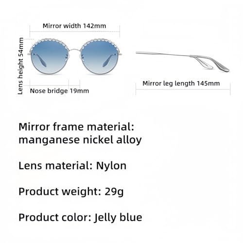 More information about HEPTICS Round Crystal Sunglasses, Blue Gradient Lenses, Silver Frame, UV Protection, Fashion Shades for Women
