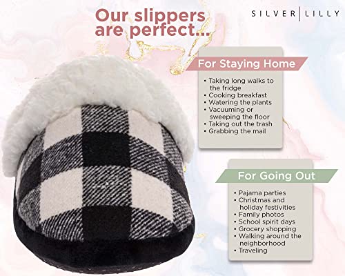 Fuzzy Buffalo Plaid Slippers for Women & Men, Sherpa House Shoes for Indoor & Outdoor, Fluffy Slides, Slide On Cute Novelty