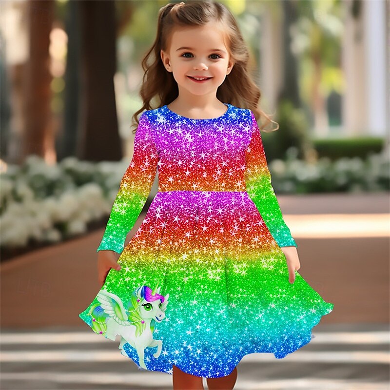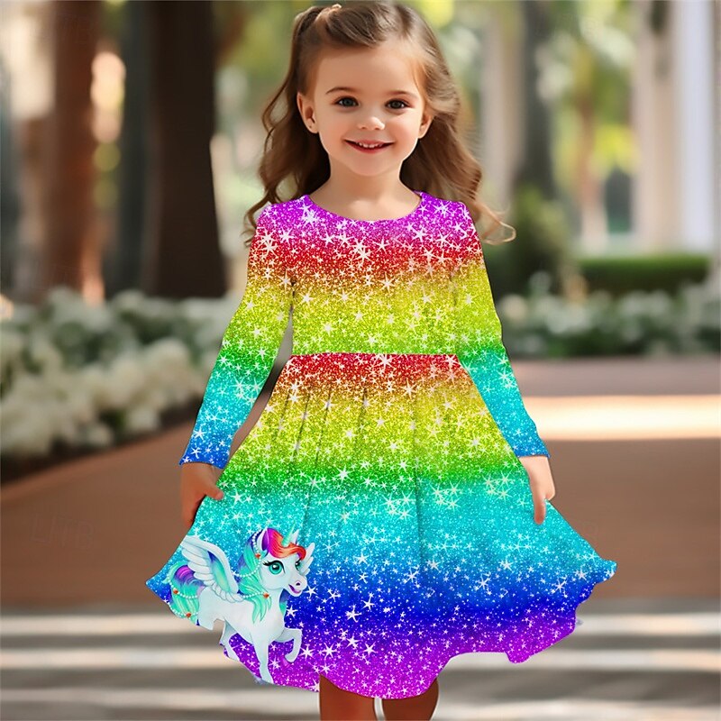This Girls' 3D Rainbow Unicorn Dress Long Sleeve Summer Spring Vacation Daily Holiday Princess attractive Sweet Kids 4-12 Years Casual Dress A Line Dress Knee-length Regular Fit combines elegant design with practical functionality. Every detail has been carefully considered to ensure you get the best possible experience. The top-grade construction means this product will serve you well for years to come.
