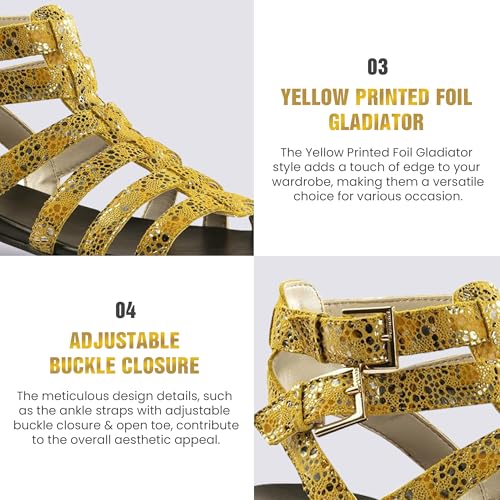 • SUMMER GLADIATOR: Experience the essence of summer with Jatarea Sandals, crafted to exude a chic and breezy vibe. The sandals are imported, bringing a global touch to your footwear collection. The summer gladiator style not only keeps you on-trend but also allows for easy pairing with all your summer outfits. The polyurethane blend metallic lining adds a contemporary touch, making these sandals a must-have for those who appreciate international fashion trends.