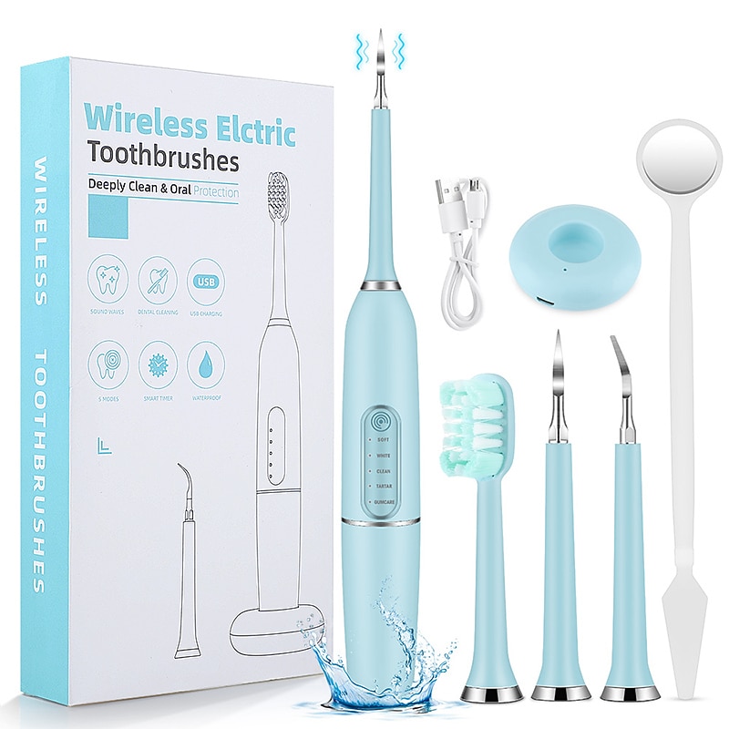 Highlights Product Selling Points: - Electric Sonic Dental Scaler effectively separates dental plaque, dental calculus, and stains. - Smart memory function automatically selects the last shutdown mode when opened. - 5 grades of adjustable frequency to remove stubborn calculus, tartar, and teeth stains. - Ultrasonic technology reduces damages to the enamel and gum caused by manual dental tools. - Safe and fast charging by USB, can be used about 200 times after one charge. - Package includes Teeth Whitening Scaler, Metal Cleaning Heads, Toothbrush Head, Dental Mirror, USB Power Cord, and User Manual. - Customer service includes protection time extension, solving missing or damaged products, tracking information, and problem-solving.