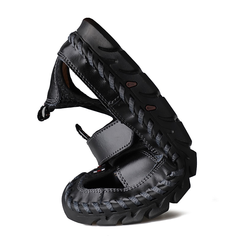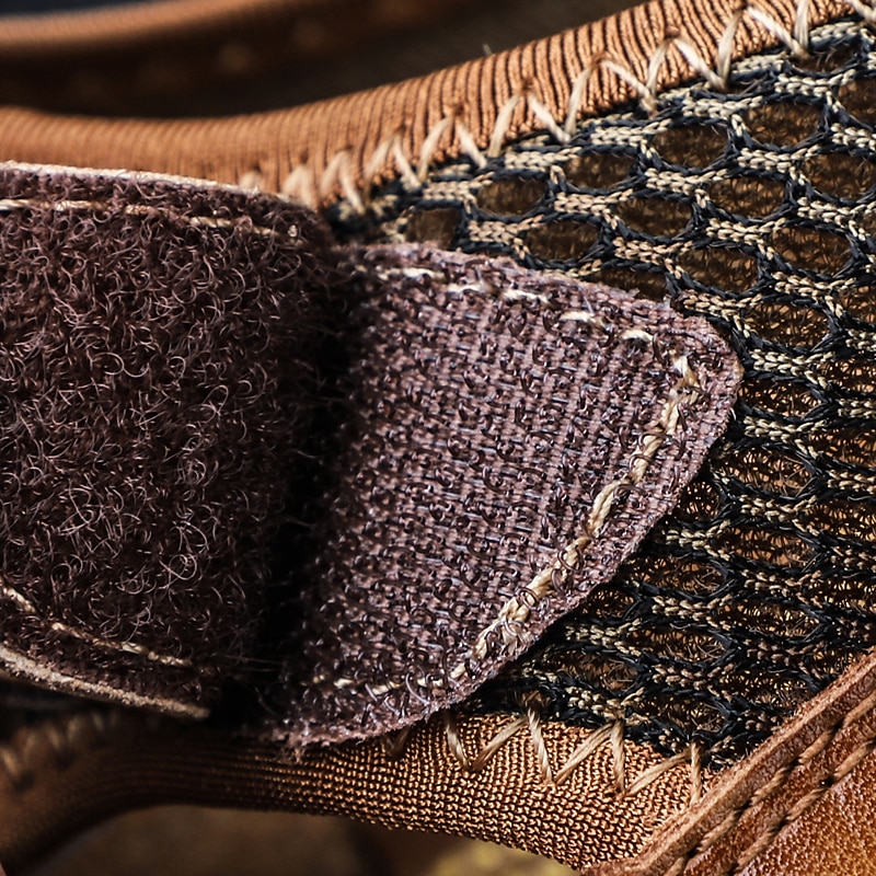 Highlights [Fabric] Crafted from premium split leather, these men's sandals combine durability and style, perfect for both spring and summer wear. The leather, available in sophisticated shades of black, brown, and wine, is woven with breathable textile straps for superior ventilation. [Fit] These sandals boast a comfortable, round-toe design. Ideal for daily wear, they offer a vintage and British style that complements both casual and office attire. [Design Highlights] Featuring a closed-toe construction with hand-stitched details, these sandals ensure a polished look. The inclusion of a breathable mesh design and a magic tape closure provides a snug fit while adding a present-day touch. [Occasions] Suitable for daily wear and office environments, these sandals are perfect for a range of activities. Whether it’s heading to the office or strolling through city streets, these shoes offer both fashion and functionality. [Size Notice] Available in a variety of sizes, from 38 to 48, including larger sizes like UK 14.5 and EU 50, these sandals cater to a broad range of foot sizes. The robust PU outsole provides a secure grip, ensuring comfort and stability across different terrains.