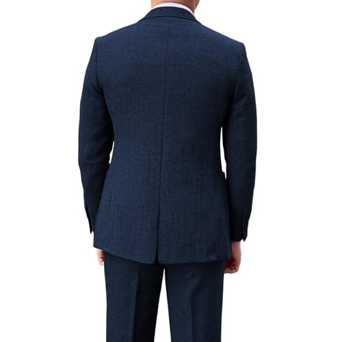 3 Piece Tweed Suit Set,Retro Herringbone Prom Tuxedos Set for Men Wedding Grooms Blazer Vest Pant Set