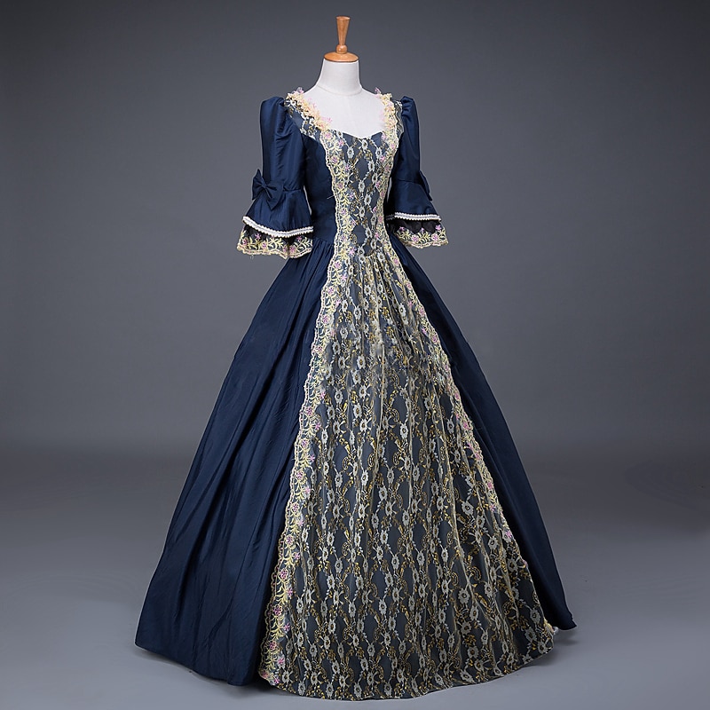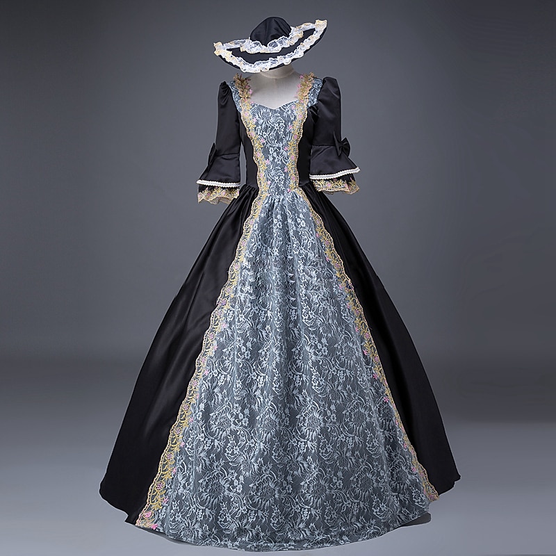 Gothic Lolita Rococo 18th Century Maxi Dress Normal Juliet Sleeve Cinderella Princess Square Neck Fancy Dress All Christmas Halloween Carnival Party Special Occasion Quinceanera Adults All Seasons 1