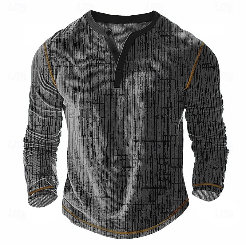 More information about Men's Geometric Abstract Henley Shirt Waffle T Shirt Long Sleeve Vintage Daily Retro Vintage Sports Outdoor Casual Holiday Spring & Summer All Seasons Grey Blue Green Burgundy Henley Henley T-Shirt