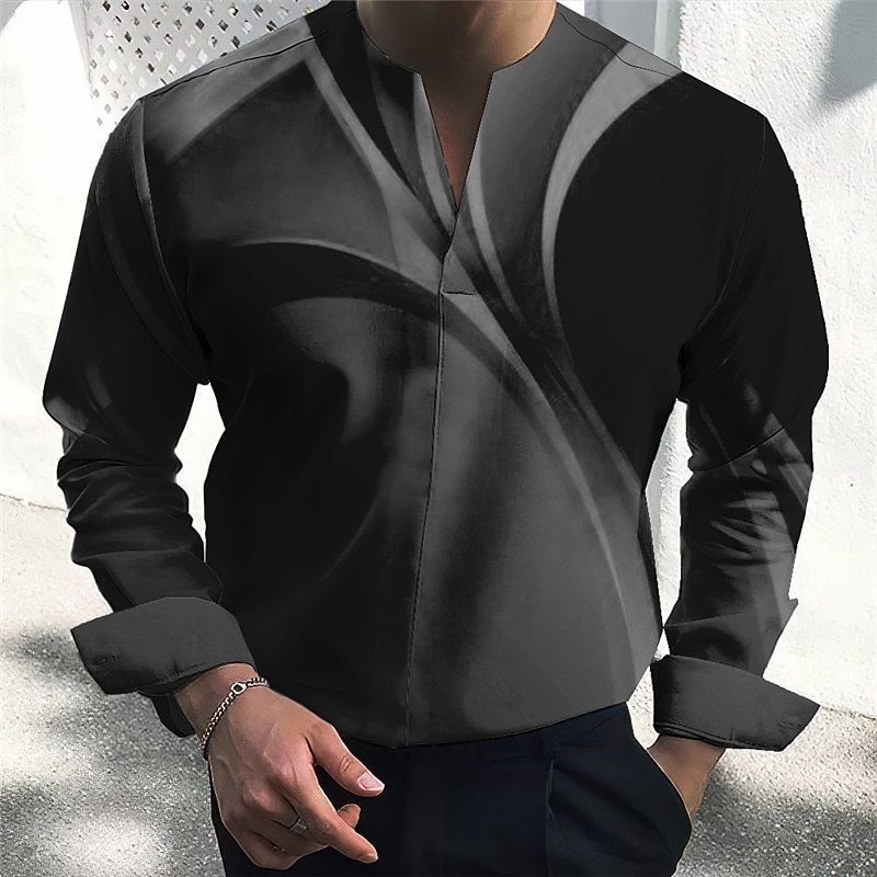 More information about Men's Shirt Dress Shirt Gradient Outdoor Casual Yellow Red Blue Green Long Sleeve V Neck Summer Fall Clothing Apparel Print