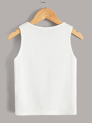 Milumia Girl's 2 Pieces Solid Ribbed Knit Tank Top Crew Neck Sleeveless Basic Tops 6