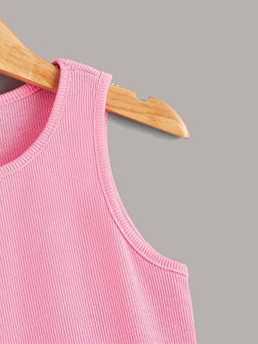 Milumia Girl's 2 Pieces Solid Ribbed Knit Tank Top Crew Neck Sleeveless Basic Tops 5